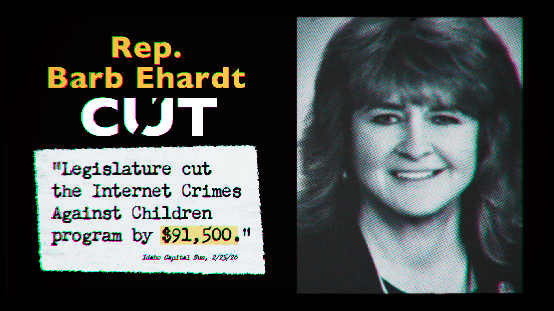 How did your state Representative vote? Child protection funding report: S1157 cut the Idaho Internet Crimes Against Children (ICAC) Task Force budget. passing by a single vote. ICAC is the front line defense against online predators: - tracking cyber-criminals- rescuing children from sexual exploitation- training law enforcement Your Representative’s record: Rep. Barb Ehardt VOTED to cut funds